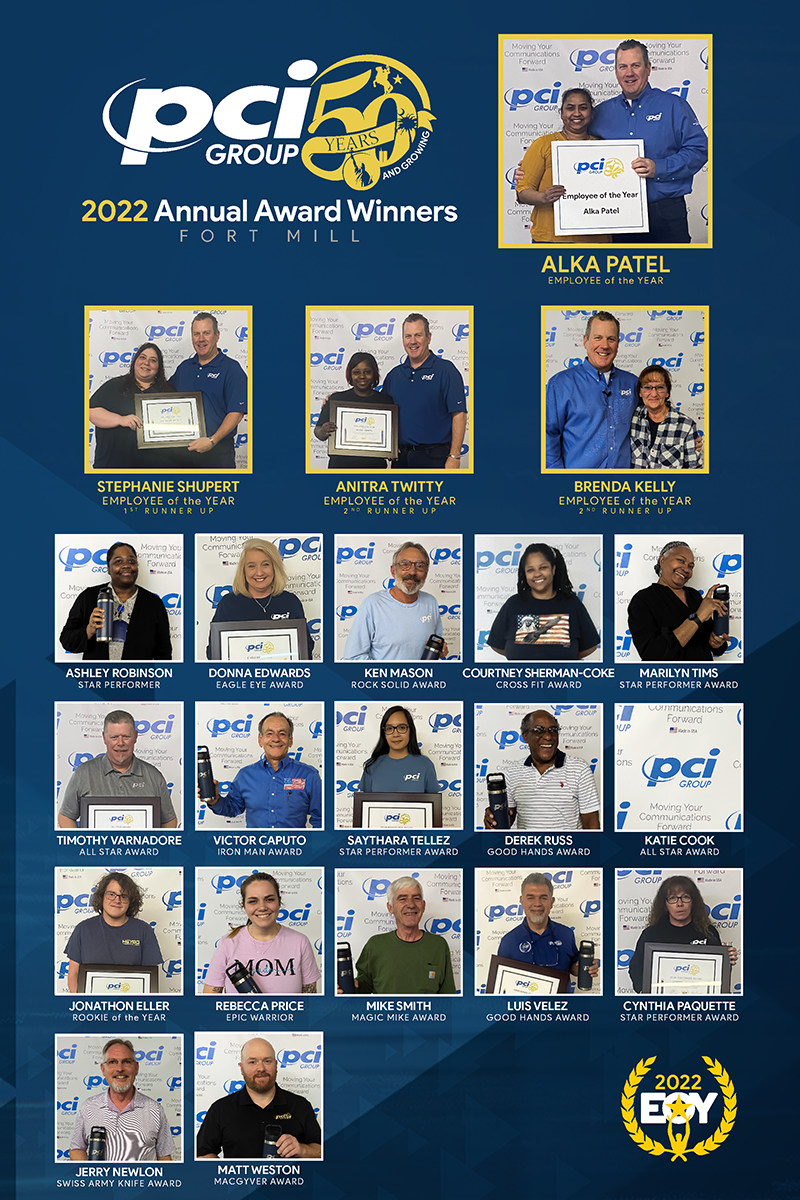 We are proud to present these employees with our annual Employee of the Year Awards. These awards are given to those who exemplify Perfect Attendance, Commitment to Excellence, and an “I Can” attitude. Our employees are the best and they are what makes PCI great! Congratulations to our 2022 Employees of the Year.