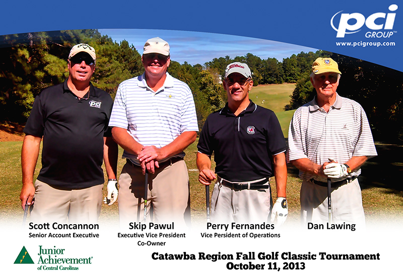Scott Concannon, Skip Pawul, Perry Fernandes of PCI Group along with Dan Lawing enjoyed a beautiful day at the Catawba Region Fall Golf Classic Tournament supporting the efforts of the Junior Achievement of Central Carolina’s mission to inspire and prepare young people to succeed in a global economy and empowering them to their own economic success.
