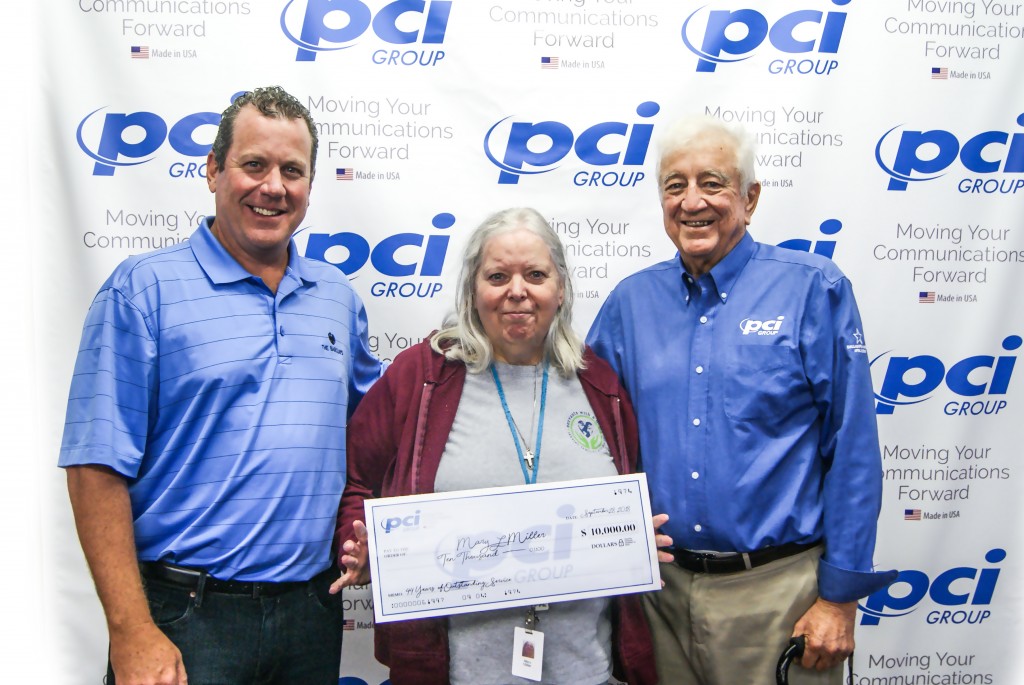 CEO and President Chris Kropac, Jr. concluded the celebration by also highlighting more fond memories of Mary and what she has meant to the company. He also presented Mary with a $10,000 check for her years of dedication and loyalty. Many laughs and tears were shared among employees at the ceremony as they reminisced of times spent working with Mary. No doubt, there will be an empty space within the four walls of PCI Group when Mary’s last day arrives.